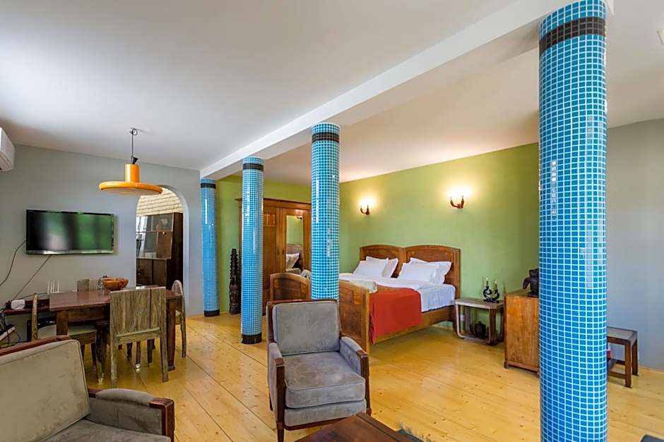 This quadruple suite room has a private entrance, big terrace, seating area, kitchenette and dining area.